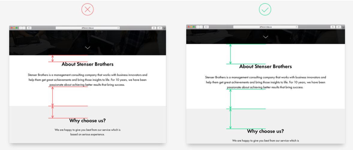 右側(cè):標(biāo)題和正文周圍相同大小的空間有助于將邏輯塊視為承載同樣重要的信息