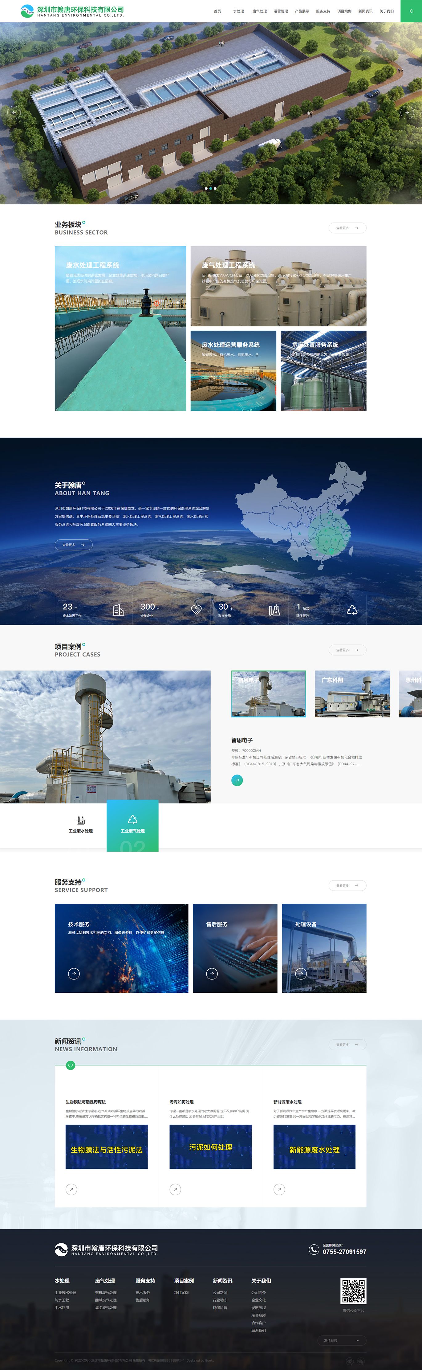 深圳市翰唐環(huán)??萍加邢薰居?006年在深圳成立,是一家專(zhuān)業(yè)的一站式的環(huán)保處理系統(tǒng)綜合解決方案提供商,其中環(huán)保處理系統(tǒng)主要涵蓋:廢水處理工程系統(tǒng)、廢氣處理工程系統(tǒng)、廢水處理運(yùn)營(yíng)服務(wù)系統(tǒng)和危廢污泥處置服務(wù)系統(tǒng)四大主要業(yè)務(wù)板塊。
